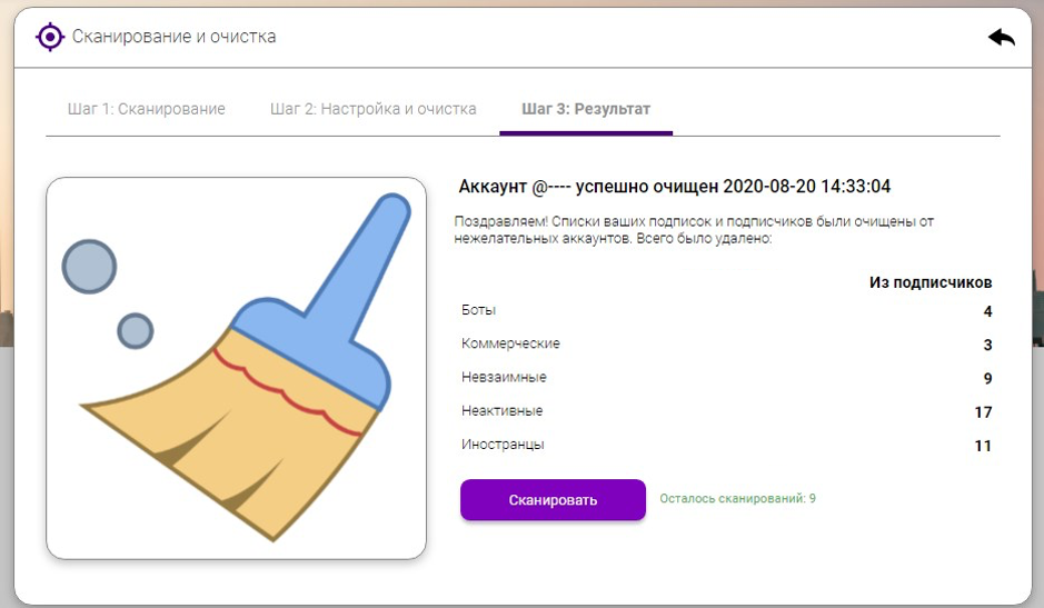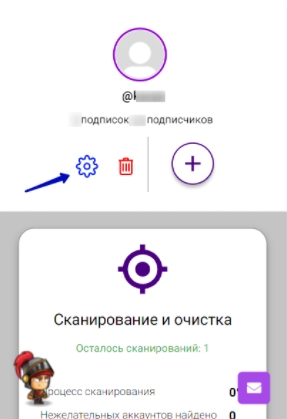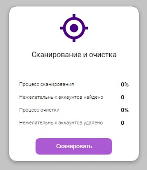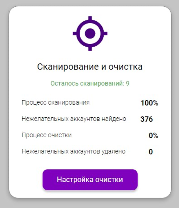После завершения анализа аккаунта - вам будет предложено настроить список для очистки и блокировки аккаунтов.