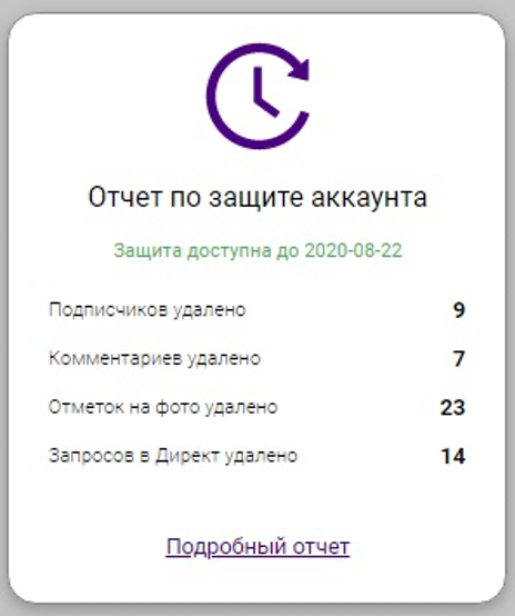 После окончания процесса очистки - вы получите соответствующее уведомление на почту, а также вам будет доступен отчёт об Очистке аккаунта.
