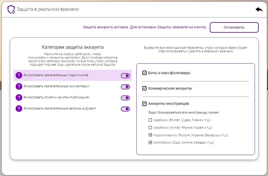 - Защита от угроз со стороны нежелательных аккаунтов.
